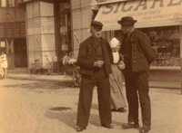 Lange Delft 63-65: personen onbekend. Links kapper Derkinderen? bron: mw. S. Panhuys-Wagensveld